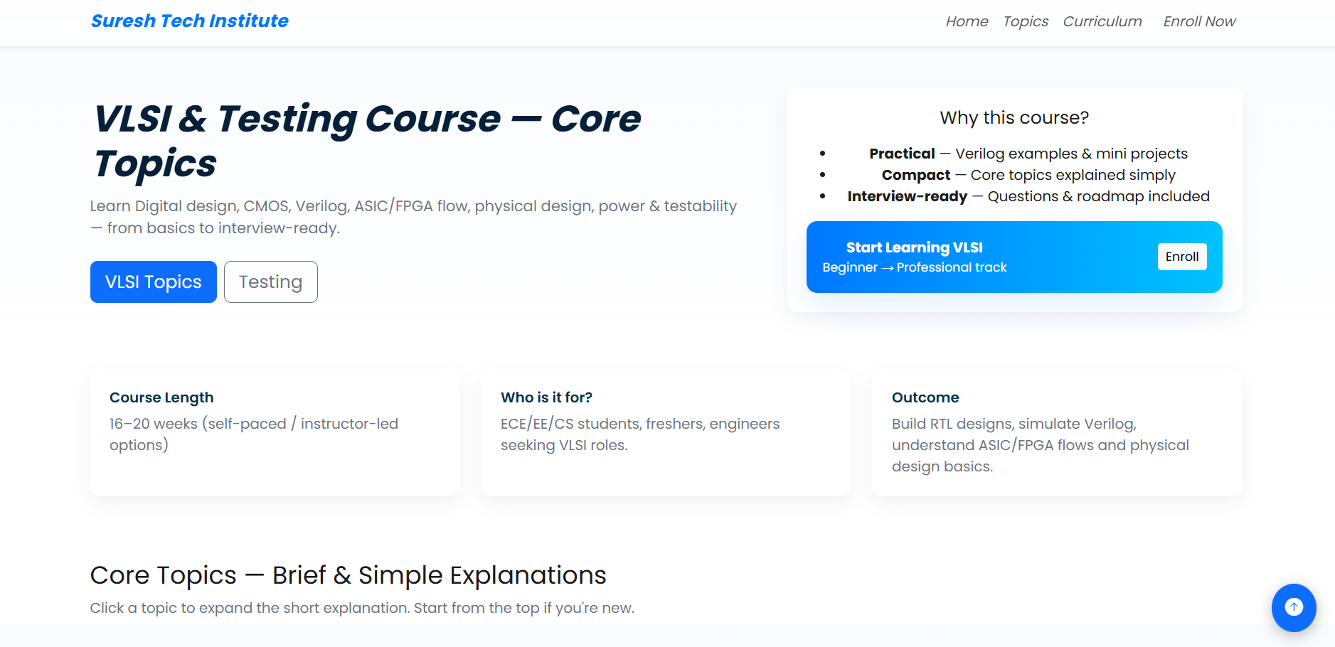 Designed the homepage explaining courses, VLSI future scope, and institute information. Built an Admin Panel for batch creation, student add/remove, and uploading class materials. Developed a Student Portal for accessing documents, test links, live classes, and recorded videos. Automated backend data storage using Google Sheets and store . Email notification sending students