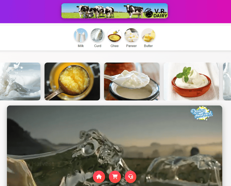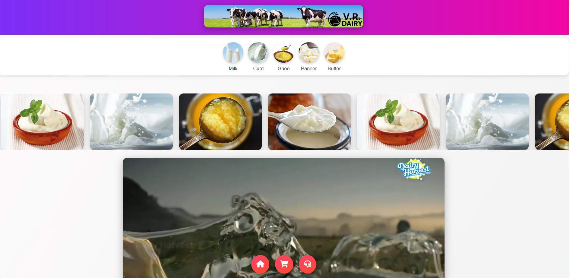 V.R Dairy is a promotional and dairy farm products and services online. The platform helps customers explore available dairy products and learn about the farm, while also providing contact options for purchasing products or making inquiries.
