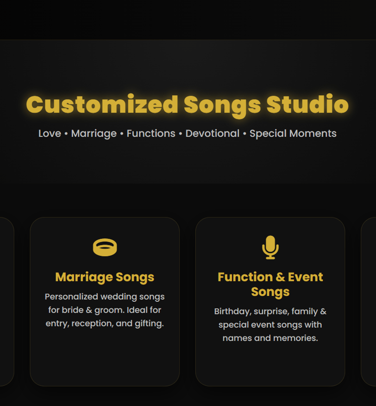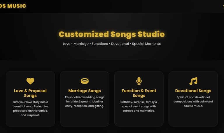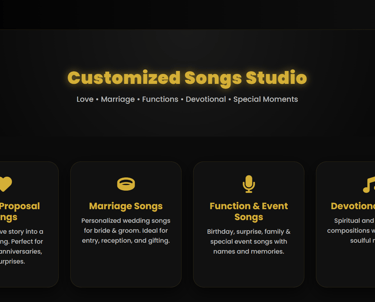 The website focuses on providing personalized musical experiences where customers can order songs that express their feelings for loved ones. These songs can be used for marriage celebrations, romantic proposals, birthdays, or other memorable events.